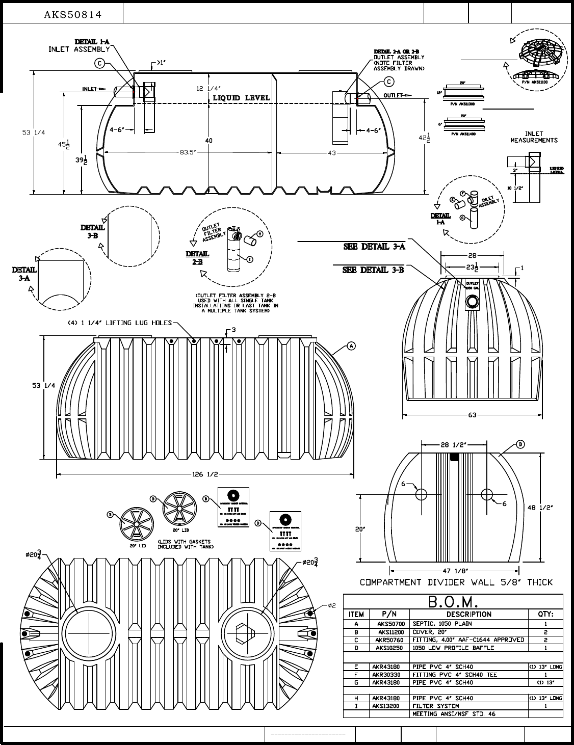 IN SEPTIC / 1050 GALLON / LOW PROFILE / 20" & 20" LIDS / TWO COMPARTMENT