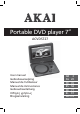 Portable DVD player 7” ALD1915H ACVDS727 User manual Gebruiksaanwijzing Manuel de l’utilisateur Manual de instrucciones Gebrauchsanleitung Οδηγίες χρήσεως Brugsanvisning GB 2 NL 20 FR 39 ES 58 DE 77 EL 97 DA116
