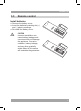 ACVDS726 3.3 Remote control Install batteries ● Remove the battery cover. ● Insert the batteries matching the (+) and (-) polarity markings. ● Re-install the battery cover. ! CAUTION Incorrect installation can cause battery leakage and corrosion which will damage the appliance. Corrosion, oxidation, battery leakage and any other gradually acidic defect of this nature will invalidate the guarantee.