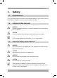 Table of contents 1. 2. 3. 4. 5. Safety............................................................................ 3 1.1 1.2 1.3 Intended use.....................................................................3 Labels in this manual........................................................3 General safety instructions...............................................3 2.1 2.2 Unpacking.........................................................................4 Package contents.............................