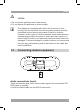 3.2 Connecting to the mains AUX IN DC IN 8.5V ● Connect the adaptor plug on the adaptor cable to the DC 8,5 V input connection. ● Connect the mains plug to a wall socket. 3.3 Remote control Installing the battery ● Press the catch and at the same time pull out the battery tray. ● Insert 1 lithium battery, type CR2032 3 V battery with the stamped (+) mark facing upward. ● Insert the battery tray into the remote control.