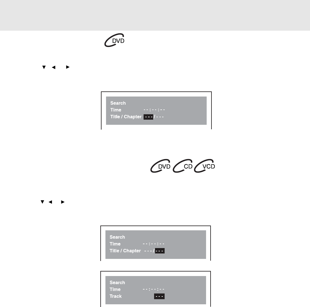 • Pressing the CLEAR button resets the title / chapter / track number.