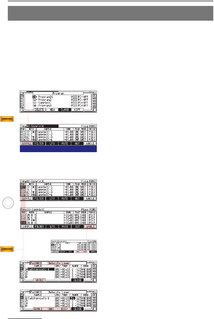 [WINDOW] to enter the Velocity Layer Settings of a Pad.
