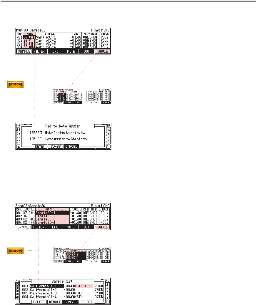 NOTE: If you press [WINDOW] in the Sample column,