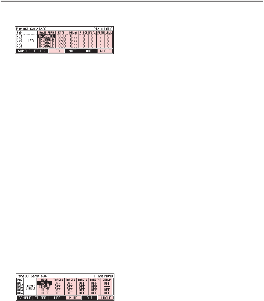 RATE: Sets the cycle time (speed) of the LFO (00.00
