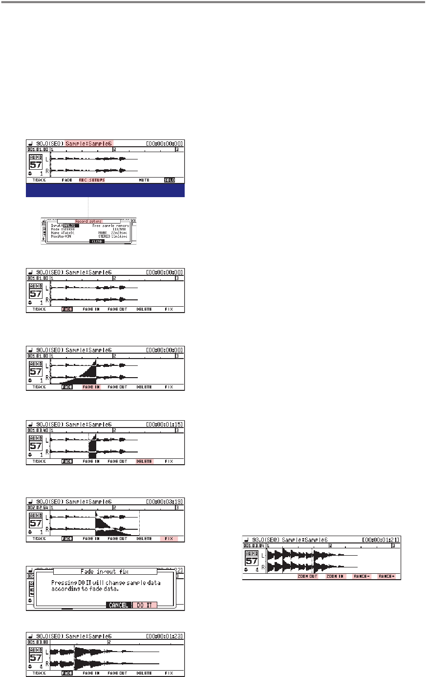Hold [FADE IN] (F4) and turn the DATA Wheel to create a