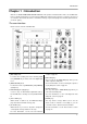 Introduction Chapter 1 : Introduction Welcome to MUSIC PRODUCTION CENTER MPC1000. This operator's manual describes how to use an MPC1000. Please read this manual before you start using your MPC1000, and keep it in a safe place so that you can refer to it as needed. In this manual, the names of the knobs and keys on panels and plugs are located in square brackets, as follows: [name] . The user interface Below is a brief overview of the MPC1000. 1.