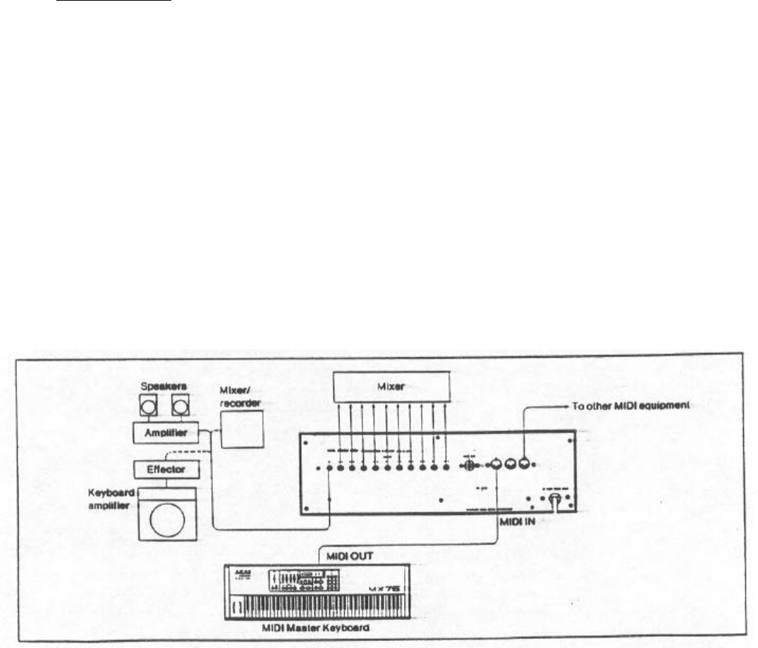 Referring to Fig. 1, connect the MIDI OUT of a suitable keyboard to the MIDI