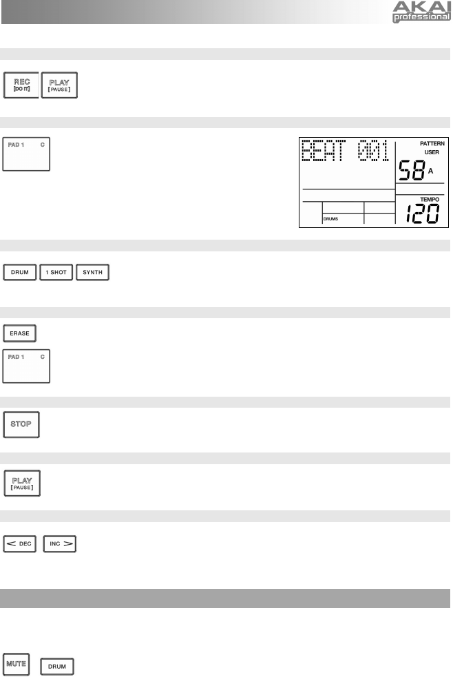 Now you are ready to start recording your Pattern. Press and hold the REC button,