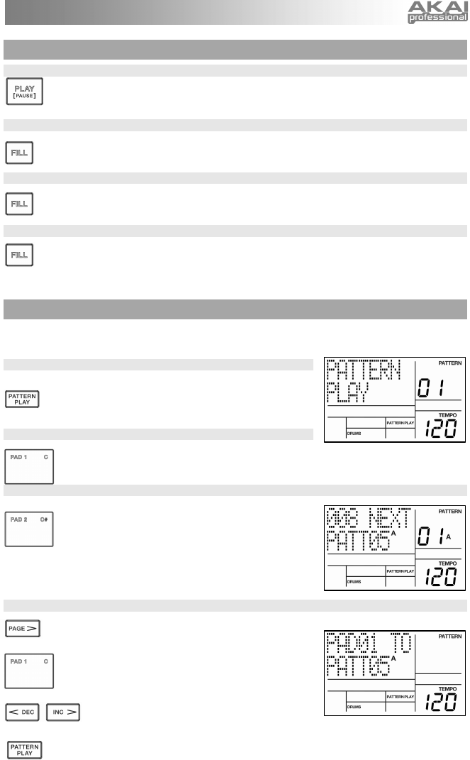 reproduciendo un patrón A. Si pulsa el botón FILL, se iniciará un relleno —pero esta vez,