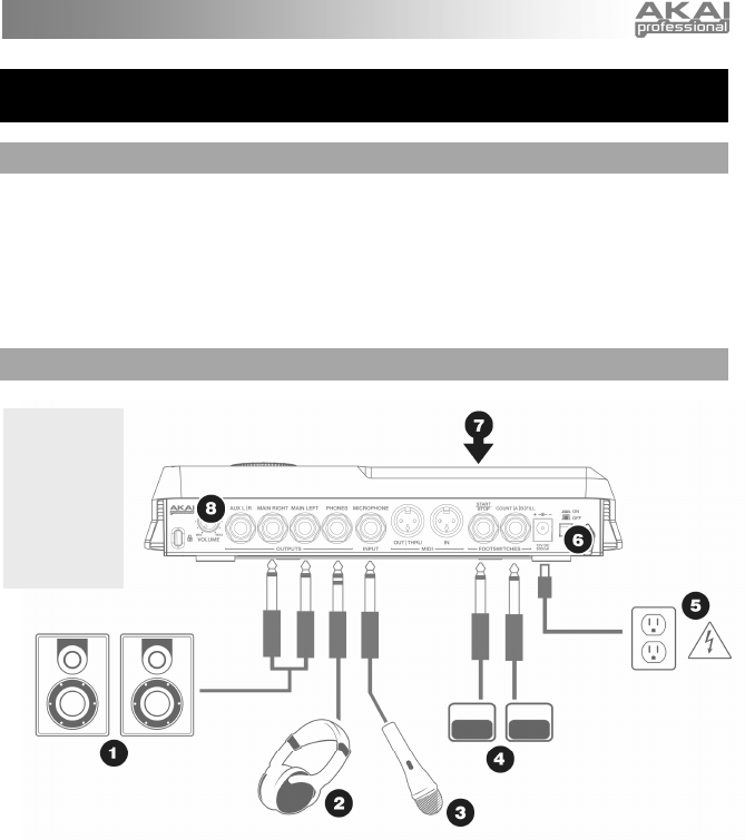 1. Plug ¼” TS cables from the MAIN OUTPUTS to an amplifier, mixer, or speaker system. For mono