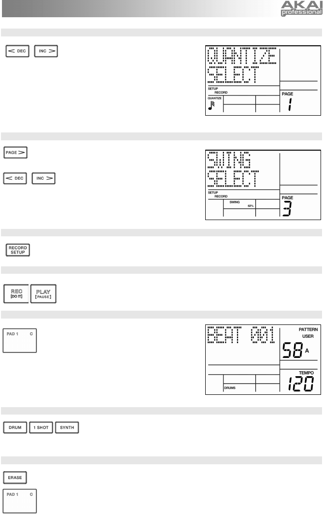 correspondantes (DRUMS, 1-SHOT, SYNTH) puis en jouant une séquence à