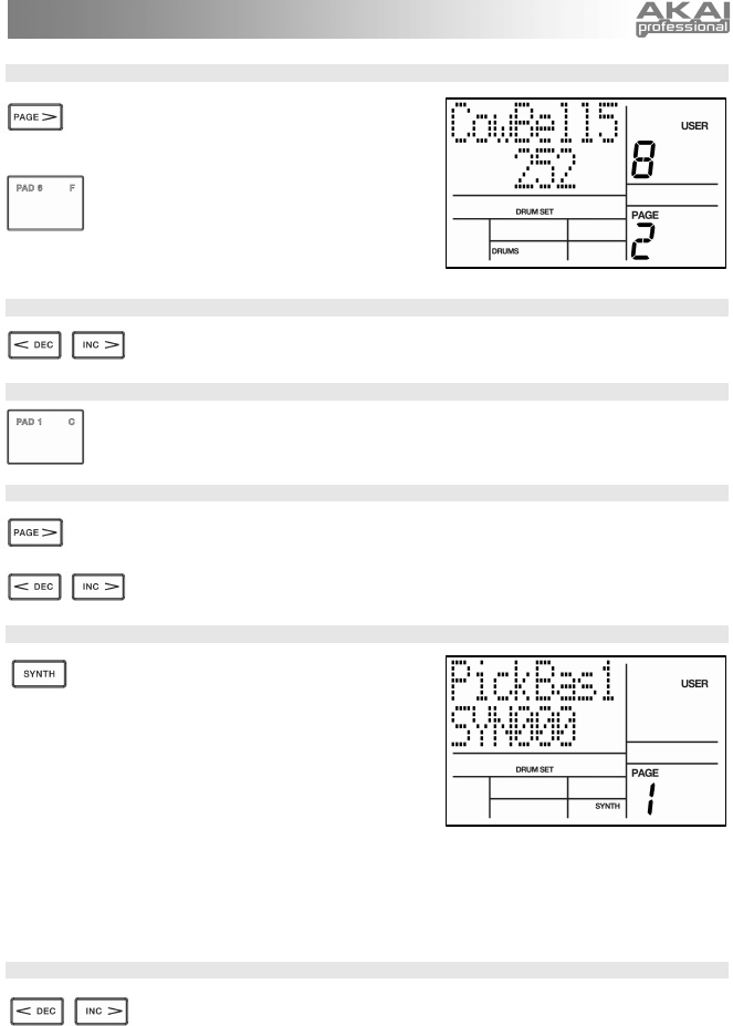 Depuis le mode Drum Set, appuyez sur la touche PAGE > afin de visionner les autres