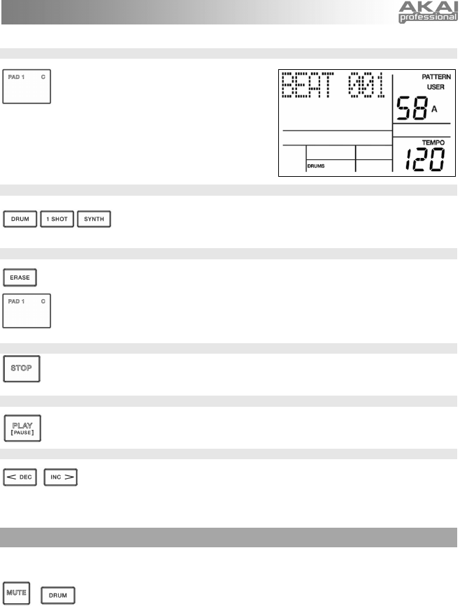 Wiedergabe des Patterns einfach die ERASE Taste gedrückt halten und das Pad, welches den
