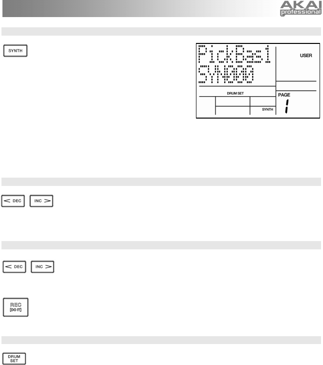 Sie dazu die SYNTH Taste auf Seite 1 des Drum