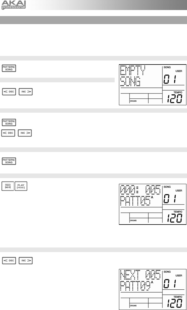 Wechseln Sie mit der PATTERN / SONG Taste in den