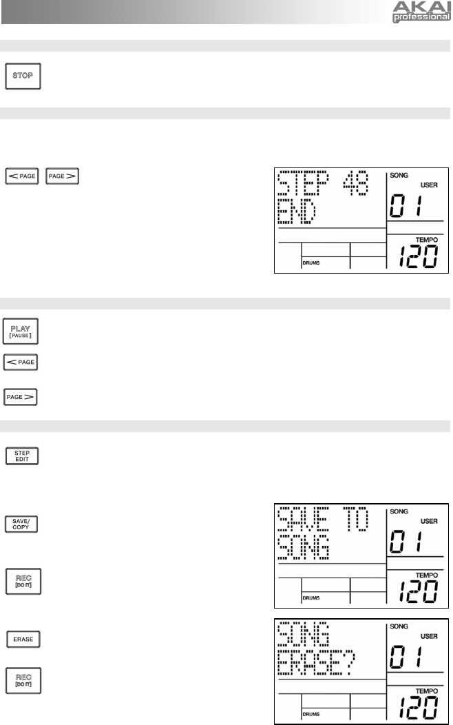 Nachdem Sie Ihre Pattern Sequenz als Song aufgenommen haben, drücken Sie die STOP