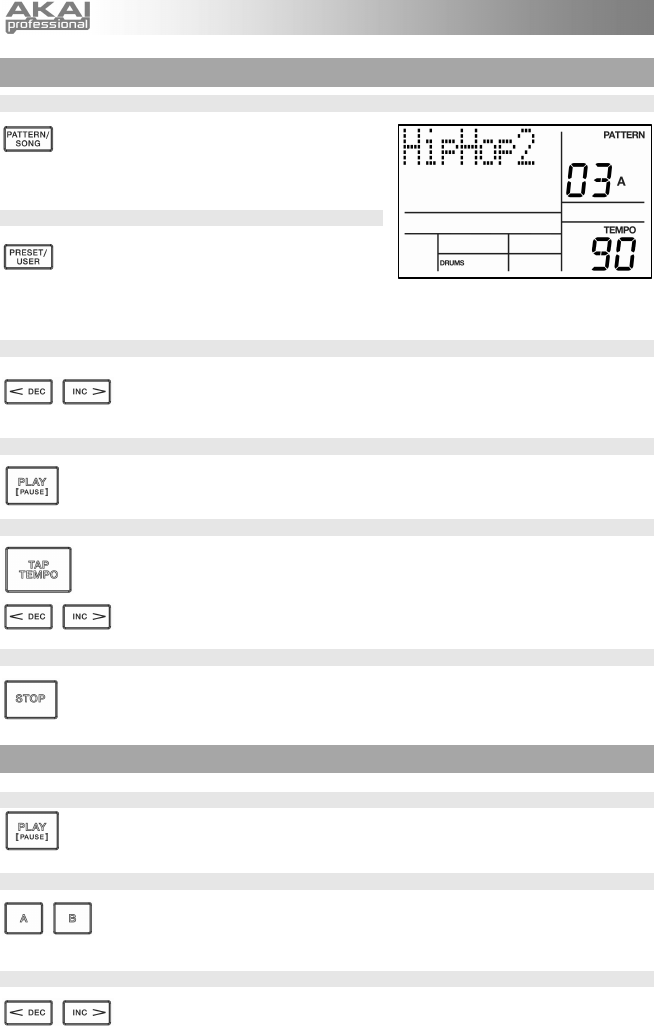 Se un pattern A è in corso di riproduzione, premere il tasto B (oppure premere A se un