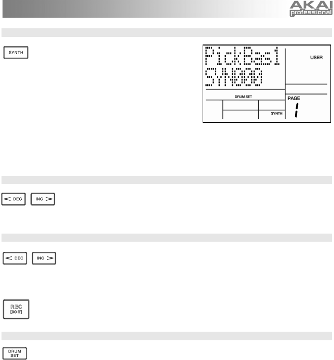Drum Set, premere il tasto SYNTH (se si ha