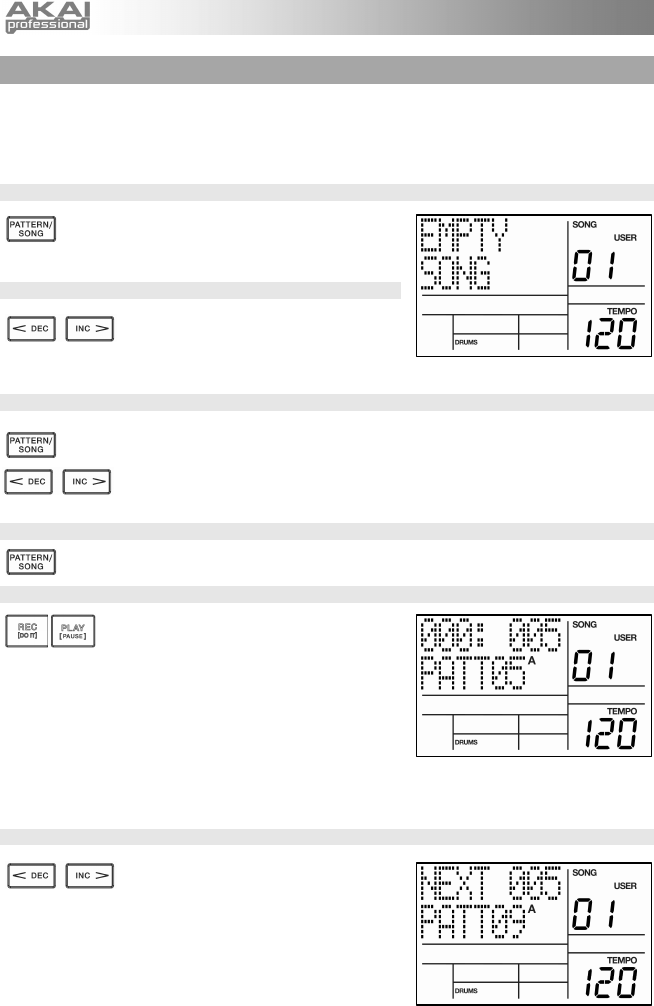 PATTERN / SONG fino a quando a display non