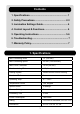 Contents 1. Specifications............................................................ 1 2. Safety Precautions................................................. 2-3 3. Lamination Settings Guide....................................... 4 4. Control Layout & Functions..................................... 4 5. Operating Instructions........................................... 5-6 6. Troubleshooting......................................................... 7 7. Warranty Policy........................................