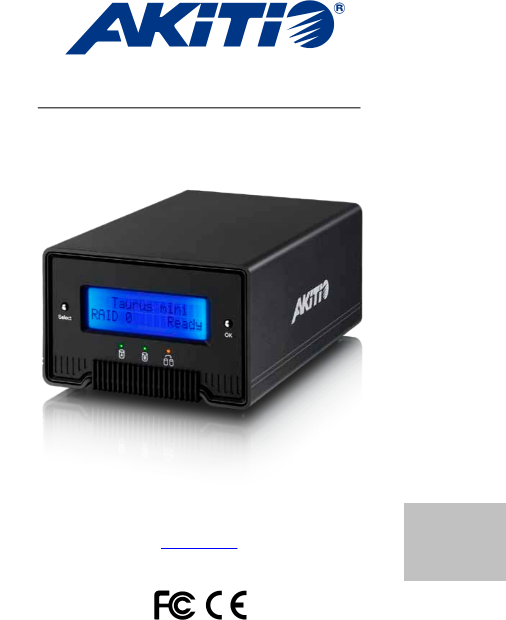 Taurus Mini Super-S LCM Dual-Bay RAID Storage Enclosure for two 2.5-inch Serial ATA Hard Drives User Manual August 1, 2011 – v1.0 www.akitio.