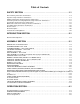 Table of Contents SAFETY SECTION . . . . . . . . . . . . . . . . . . . . . . . . . . . . . . . . . . . . . . . . . . . . 1-1 General Safety Instructions and Practices . . . . . . . . . . . . . . . . . . . . . . . . . . . . . . . . . . . . . . . . . . . . . . . . . . . . 1-2 Operator Safety Instructions and Practices . . . . . . . . . . . . . . . . . . . . . . . . . . . . . . . . . . . . . . . . . . . . . . . . . . . 1-3 Equipment Operation Safety Instructions and Practices . . . . . . . . . . . . . . . . .