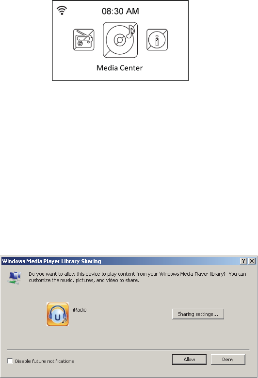 Die Option Media Center > UPnP ermöglicht Ihnen die Wiedergabe von freigegebener Musik von