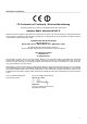 Declaration of Conformity CE- Declaration of Conformity / Konformitätserklärung We hereby declare that our product: / Wir erklären hiermit, dass unser Produkt Amateur Radio Albrecht AE 485 S satisfies all technical regulations applicable to the product within the scope of EU Council Directives, European Standards and national frequency applications:/ alle technischen Anforderungen im Geltungsbereich der EU Richtlinien, europäischer Normen und nationaler Frequenzanwendungen einhält: 73/23/EEC, 2004/108/ E