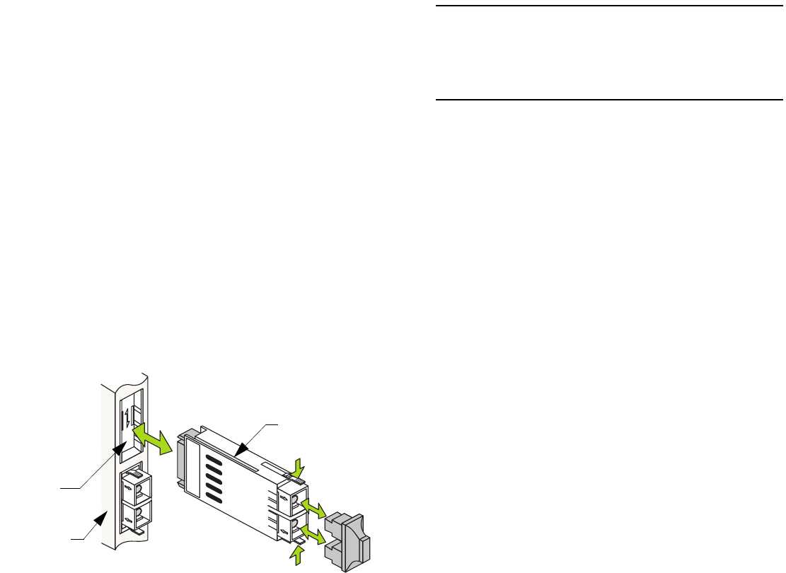 Caution. Do not force the GBIC into the slot. If the GBIC