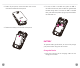 2. Power off your phone, remove the back cover via the notch at the bottom-left of the phone. 4. To insert a SIM or microSD card, push the SIM or microSD card into the card slot with the gold-colored contacts facing down. To remove the SIM or microSD card, push down the plastic spring and pull the SIM or microSD card out. car d SD c ard SIM 3. Remove the battery from the back of the phone.