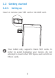 1.2 Getting started 1.2.1 Setting up Insert or remove your SIM card or microSD card. SD SIM SD SIM our tablet only supports Nano SIM cards. In Y order to avoid damaging your device, do not attempt to insert other SIM types, such as Mini or Micro cards.