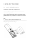 2. INSTALLING YOUR PHONE 2.1. Installing and Charging the Batteries 1) Slide down to open the battery compartment cover. 2) Place the 2 supplied rechargeable batteries as indicated. Pay extra attention to direction of polarity. 3) Slide the battery compartment cover back. 4) Put the handset on the base and charge for 15 hours before using the handset for the first time. The handset will give a beep when it is properly placed on the base or charger.