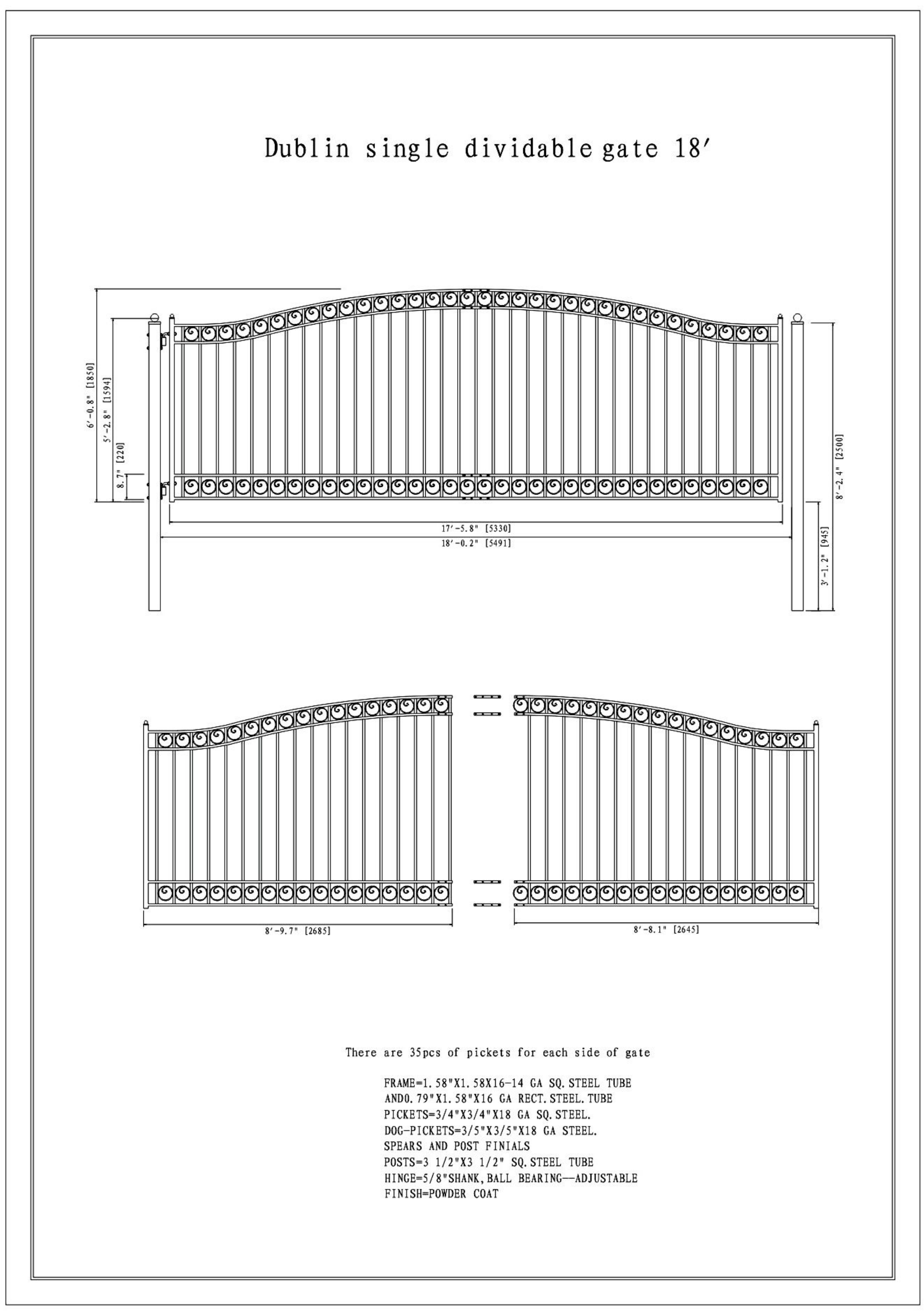 Dublin Style 18 ft. x 6 ft. Black Steel Single Slide Driveway Fence Gate