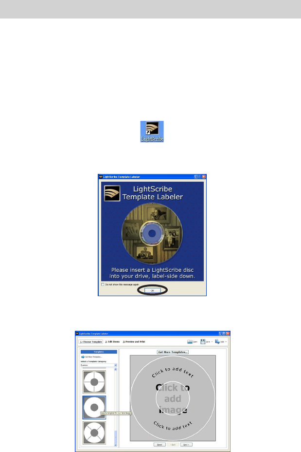 LightScribe Direct Disc Labeling → LightScribe Template Labeler.