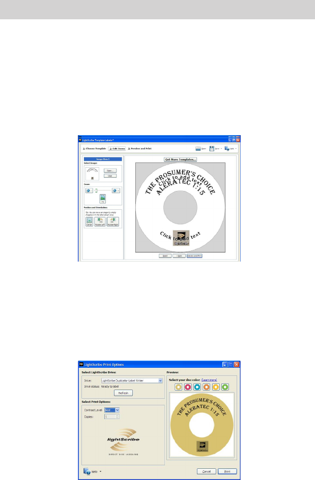 Note: The “LightScribe Duplicator Label Writer” must be selected in