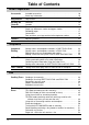 Table of Contents Initial Preparation Accessories Included accessories . . . . . . . . . . . . . . . . . . . . . . . . . . . . . . . . . . . . 10 Accessory information . . . . . . . . . . . . . . . . . . . . . . . . . . . . . . . . . . . 10 Help Button Help function . . . . . . . . . . . . . . . . . . . . . . . . . . . . . . . . . . . . . . . . . . 11 Finding the Controls Overview . . . . . . . . . . . . . . . . . . . . . . . . . . . . . . . . . . . . . . . . . . . . . 12 Location . . . . . . . . . . .