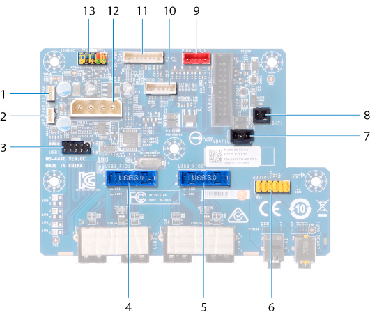 5 front I/O connector (USB3_FIO2) 6 audio connector (AUDIOIO1)