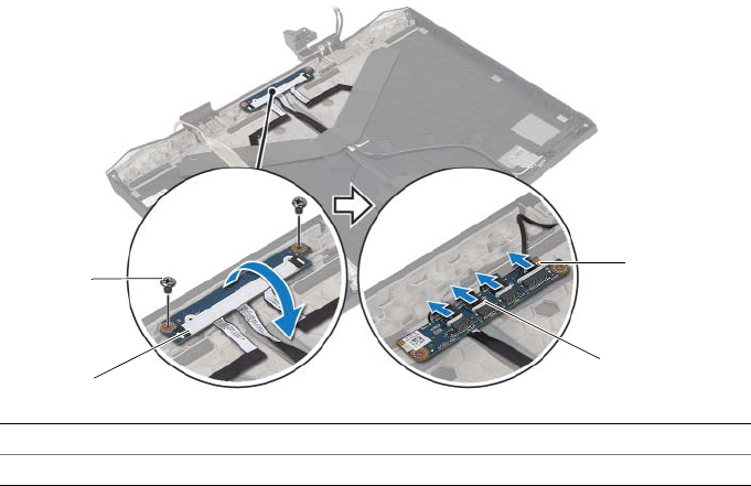 2 Carefully rotate the logo board and disconnect the display light-board cables and