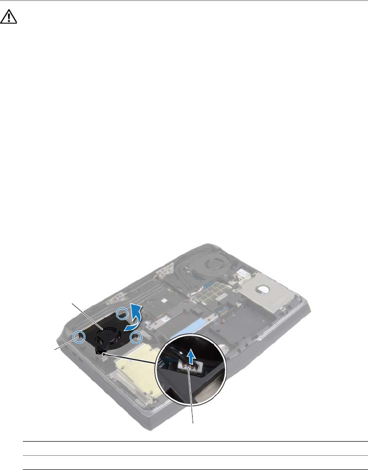 1 Loosen the captive-screws that secure the video-card fan to the computer base.