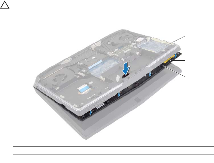 CAUTION: Push the palm rest down carefully to avoid scratching