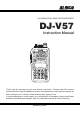 44/430MHz DUAL BAND FM TRANSCEIVER DJ-V57 Instruction Manual Thank you for purchasing your new Alinco transceiver. Please read this manual carefully before using the product to ensure full performance, and keep this manual for future reference as it contains information on after-sales service. In case addendum or errata sheets are included with this product, please read those materials and keep them together with this instruction manual for future reference. ALINCO, INC.