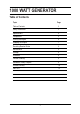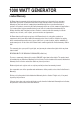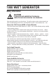 1000 WATT GENERATOR Table of Contents Topic Page Table of Contents 2 Safety Information 3 Specifications 4 Components 5 Starting the Engine 6 Stopping the Engine 7 Resetting Breaker Button 8 Maintenance 8 Storage 8 Statement 8 Trouble Shooting 9 Generator Theory Diagram 9 Limited Warranty 10 Parts List 12 2