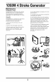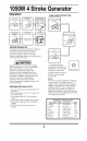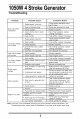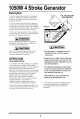 1050W4 StrokeGenerator Tableof Contents 2 2 2 3 1. DESCRIPTION 2. UNPACKING 3. GENERAL SAFETY 4. OPERATION 3 PRE-OPERATION GROUNDING 4 DC APPLICATION 4 STARTING 4 ENGINE GENERATOR LOAD 5 BREAK-IN SHUT 5 OFF 5 AND PROTECTOR OIL WARNING 5 SYSTEM 6 5, MAINTENANCE INFREQUENT 6 USAGE 6 STORAGEMAINTENANCE 7 SCHEDULE 6, TROUBLESHOOTING 8 7. WIRING 9 DIAGRAM 8. EXPLODED 10 VIEW 11 9. PARTS LIST.