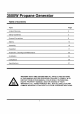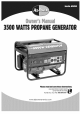 3500W P ro ane Ge ne rat,or Table of Contents Topic Page Limited Warranty 3 Safety Guidelines 5 General Precautions 6 Battery 15 Assembly 16 Operation 17 Inspection, Cleaning and Maintenance 23 Installation 24 Compliance 26 Specifications 27 WARNING! READ AND UNDERSTAND ALL SAFETY PRECAUTIONS IN THIS MANUAL BEFORE OPERATING. FAILURE TO COMPLY WITH INSTRUCTIONS INTHIS MANUAL COULD RESULT IN PERSONAL INJURY, PROPERTY DAMAGE, AND/OR VOIDING OF YOUR WARRANTY.