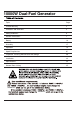 10000W Dual-Fuel Generator Topi c Page Limited Warrant y 3 Limitations and exclusions 5 S a fet y G u i d e l i n e s 6 G e n e r a l Pr e c a u t i o n s 7 Battery 16 Assembly 17 Operation 18 Spark Plug Service 25 Inspection, Cleaning, Maintenance and Storage 26 Installation 32 Speci fications 34 General Par ts Listing 35 altitude kit altitude kit 2