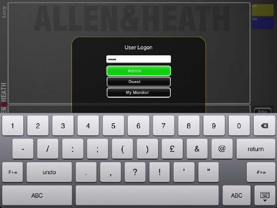 Other User Profiles already set in the iLive will be seen in the OneMix logon