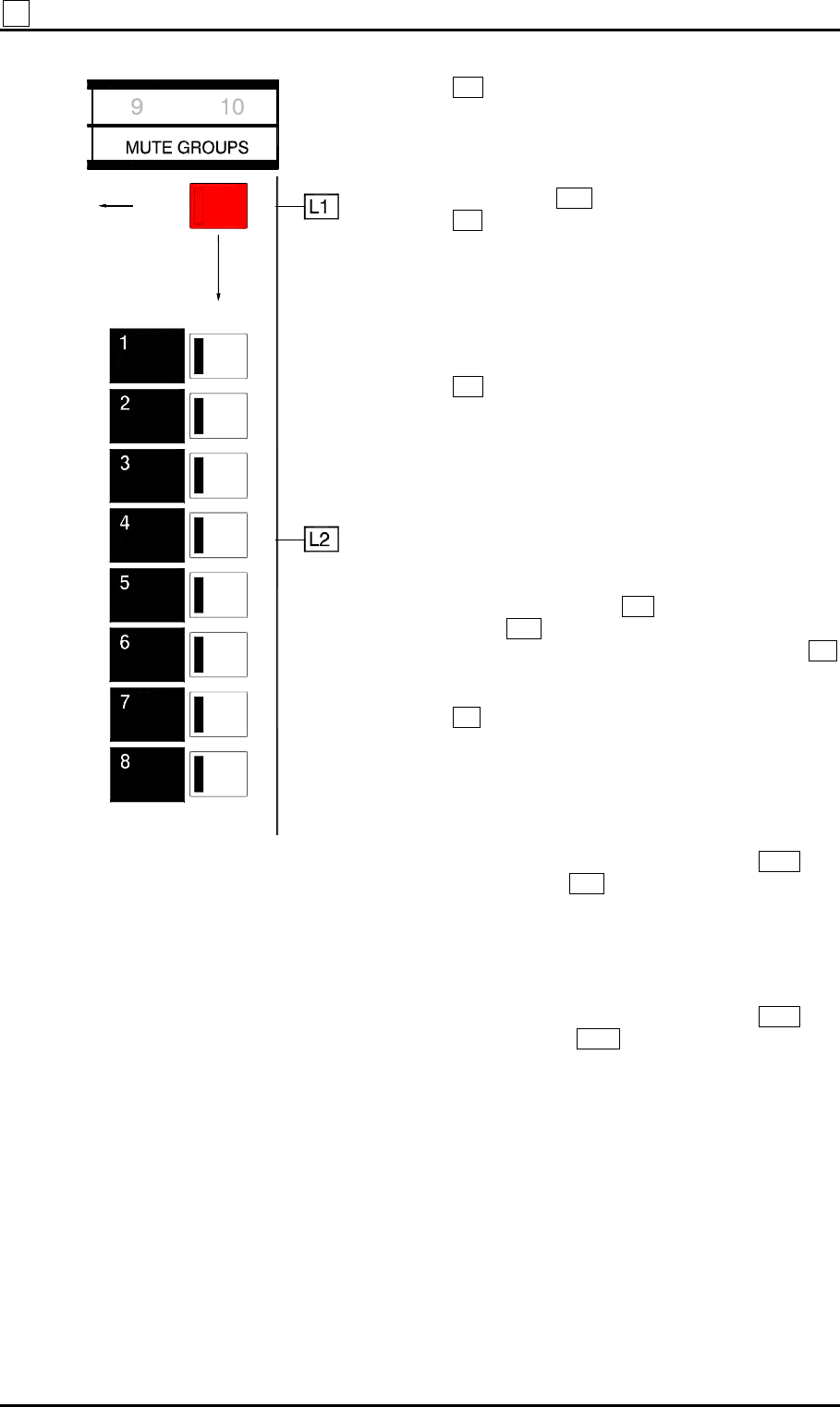 L2 MUTE GROUP. Press one or more of these