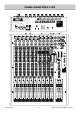 SPECIFICATIONS Operating Levels Input Mono channel (XLR) Input +6 to –63dBu for nominal (+17dBu in max) Mono channel Line Input (Jack socket) +10 to –26dBu (+30dBu maximum) Insert point (TRS Jack socket) 0dBu nominal +21dBu maximum Stereo Input (Jack sockets) 0dBu nominal (control = Off to +10dB) Stereo input (phono sockets) 0dBu nominal (control = Off to +10dB) Output L, R & Mono Outputs (L&R XLR, Mono Jack) 0dBu nominal. +21dBu maximum. Aux Outputs (Jack sockets) 0dBu nominal. +21dBu maximum.