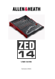 PRODUCT SUPPORT Investigate ALLEN & HEATH’s other ranges at www.allen-heath.com Large Live Sound mixers — iLive digital, ML and GL Series Small Format Live Sound mixers — ZED, MixWizards and PA Series DJ products — Xone Series Sound Management Series — iDR Series Registering your product Thank you for buying the Allen & Heath ZED-14 mixer. you enjoy many years of faithful service with it. We hope that you are happy with it and that Please go to www.allen-heath.com/register.